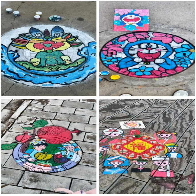 校园井盖“大变身”!当涂鸦遇上青春,每一步都踩在浪漫里