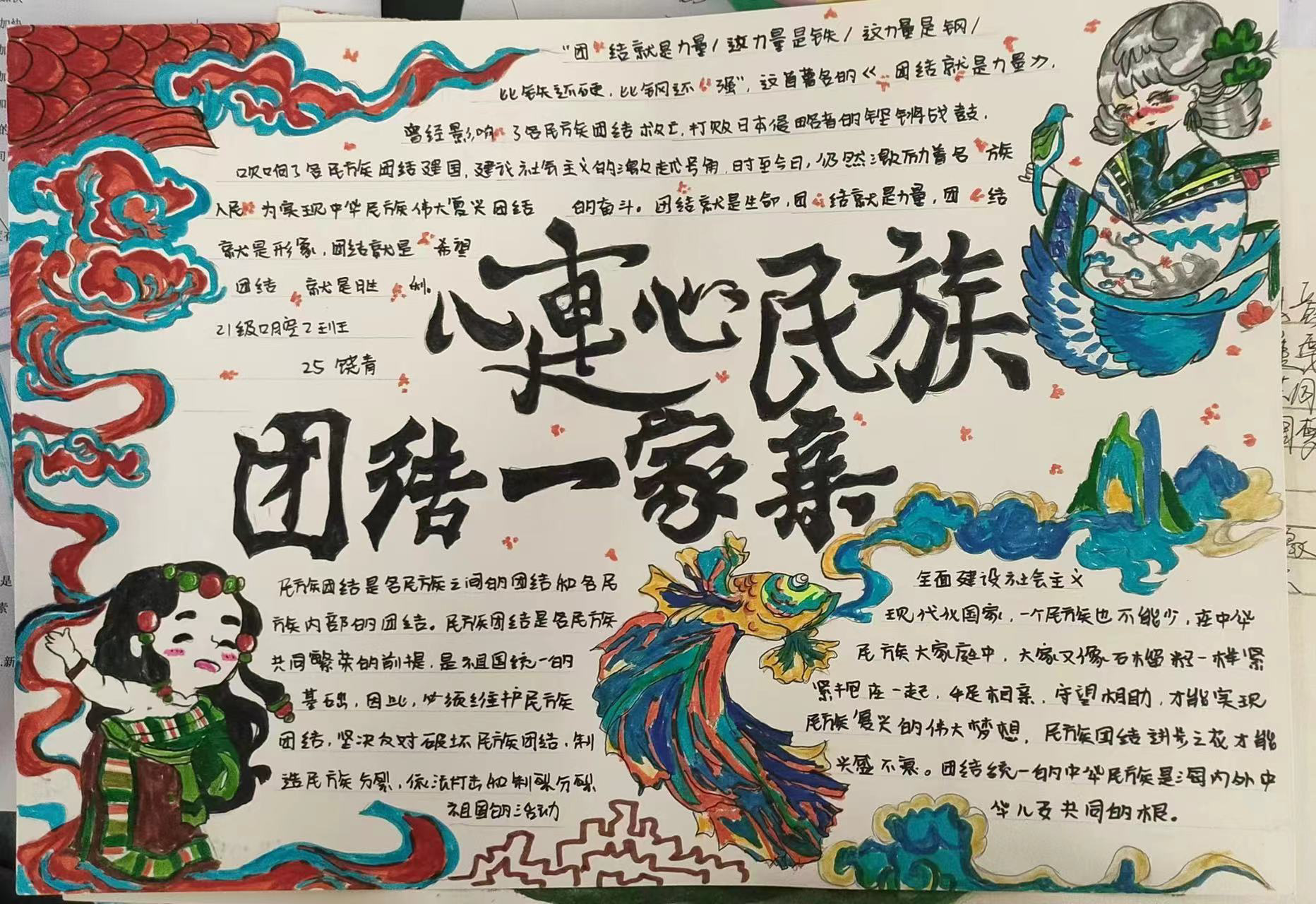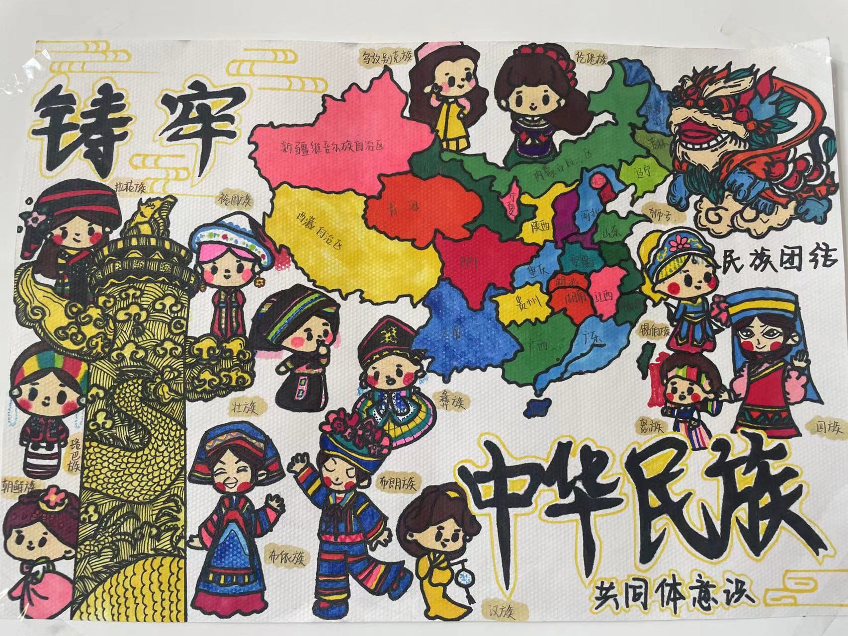 为全面贯彻落实习近平总书记关于加强和改进民族工作的重要思想,学习好宣传好贯彻好党的二十大精神,本学期“形势与政策”课程设“铸牢中华民族共同体意识”专题。与此同时,思政部组织学生积极开展了“民族团结一家亲,巧手绘画民族情”主题绘画活动,各班学生积极提交绘画作品,形式多样、内容丰富。活动共收到绘画作品一百余幅,创作剪辑视频若干。