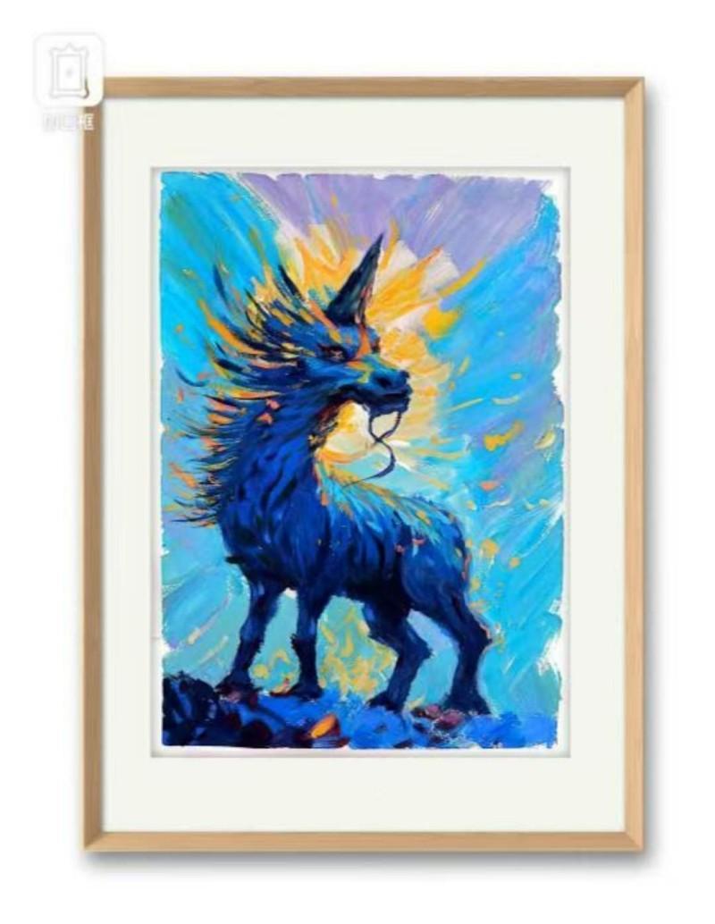 创意说明:灵感源自《山海经》,獬豸作为辨忠奸、明善恶的神兽,象征公正廉洁。冷色调营造神秘肃穆氛围,传递廉洁奉公、守护正义的精神内涵。