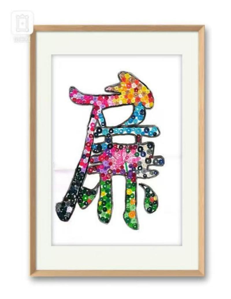 创意说明:衍纸作品以“廉”字为核心,通过红、黄、蓝、绿等色彩象征赤诚、清正、生机等内涵,展现廉政建设需要众人坚守、共同践行。