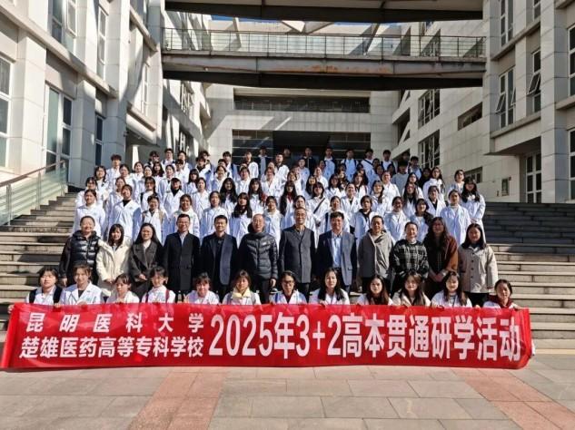 为深化高本贯通培养模式改革,搭建优质教育资源共享平台,帮助学生提前感知本科院校学术氛围与育人特色,12月9日,楚雄医药高等专科学校党委委员、副校长陆鸿奎带领药学院高本贯通班师生赴昆明医科大学开展专题研学活动,药学院院长赵有亮、学校办公室副主任张嘉俊、药学院副院长李文婷一同参与研学。昆明医科大学党委常委、副校长殷建忠,药学院党政班子出席此次活动。