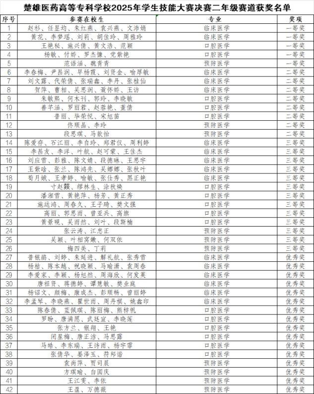 2025年学生技能大赛获奖学子二年级赛道获奖学子