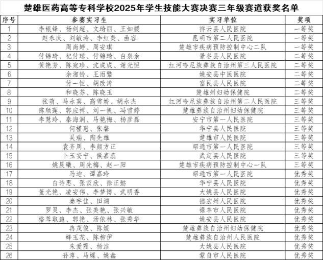 初冬时节,硕果飘香。11月28日至29日,楚雄医药高等专科学校成功举办2025年师生技能竞赛决赛。本次大赛涵盖教师教学能力风采大赛与学生技能大赛两大板块,旨在深入贯彻落实《国家职业教育改革实施方案》的重要精神,推动“以赛促教、以赛促学、以赛促改、以赛促建”,全面提升师生综合素养与专业技能水平。
