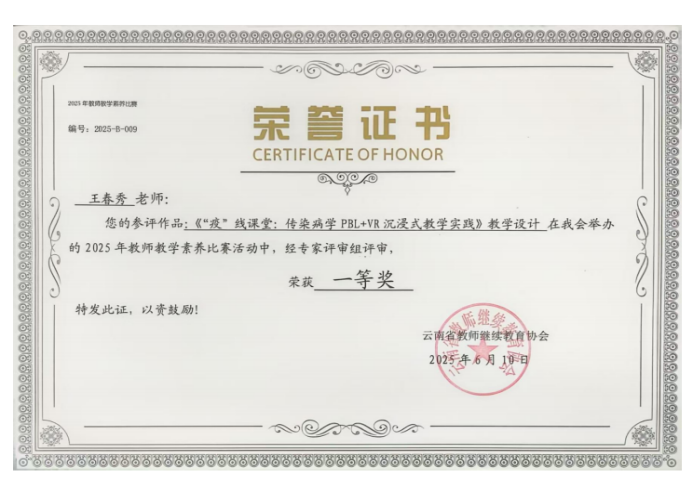 《“疫”线课堂:传染病学PBL+VR沉浸式教学实践》获省级教学素养比赛一等奖