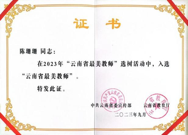 院长陈珊珊获2023年度“云南省最美教师”称号