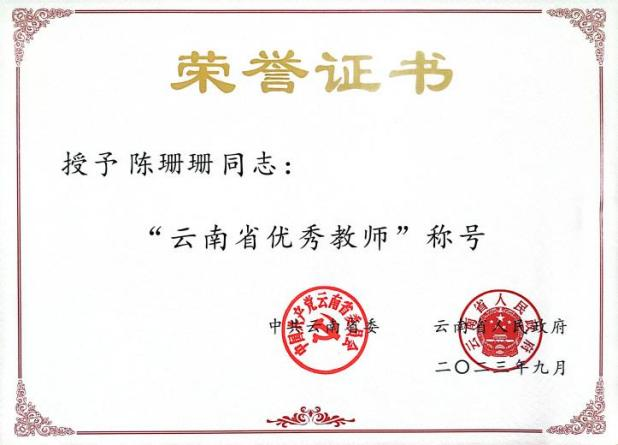 院长陈珊珊荣获2023年度“云南省优秀教师”称号
