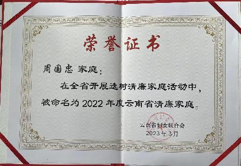 周国忠教师家庭获评2023年云南省“清廉家庭”