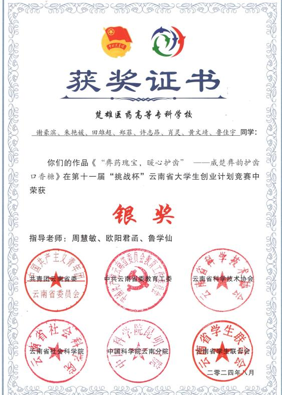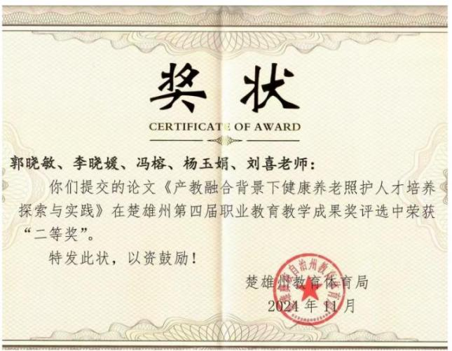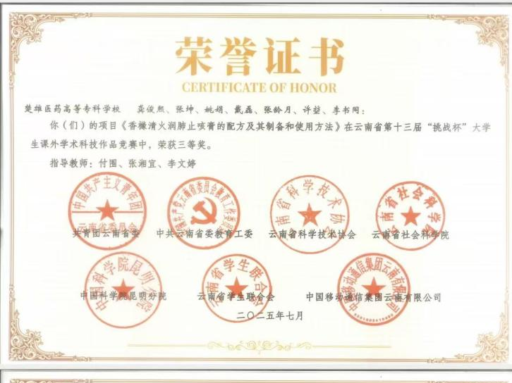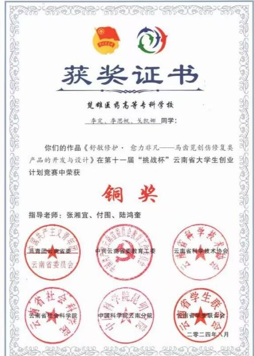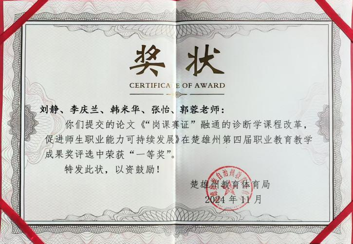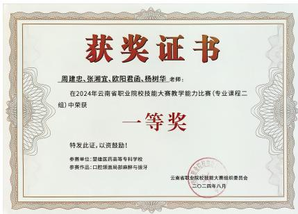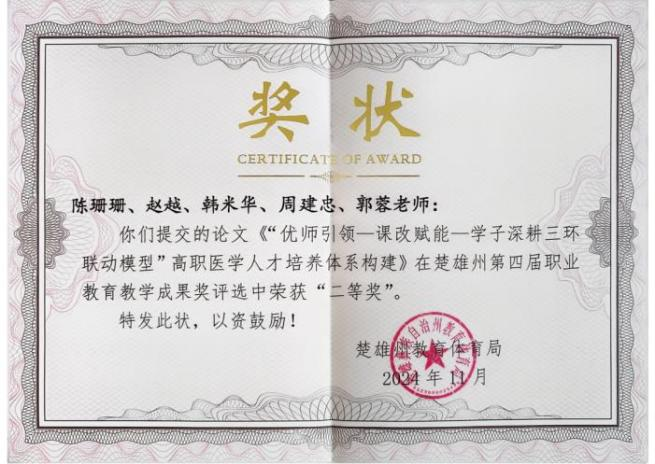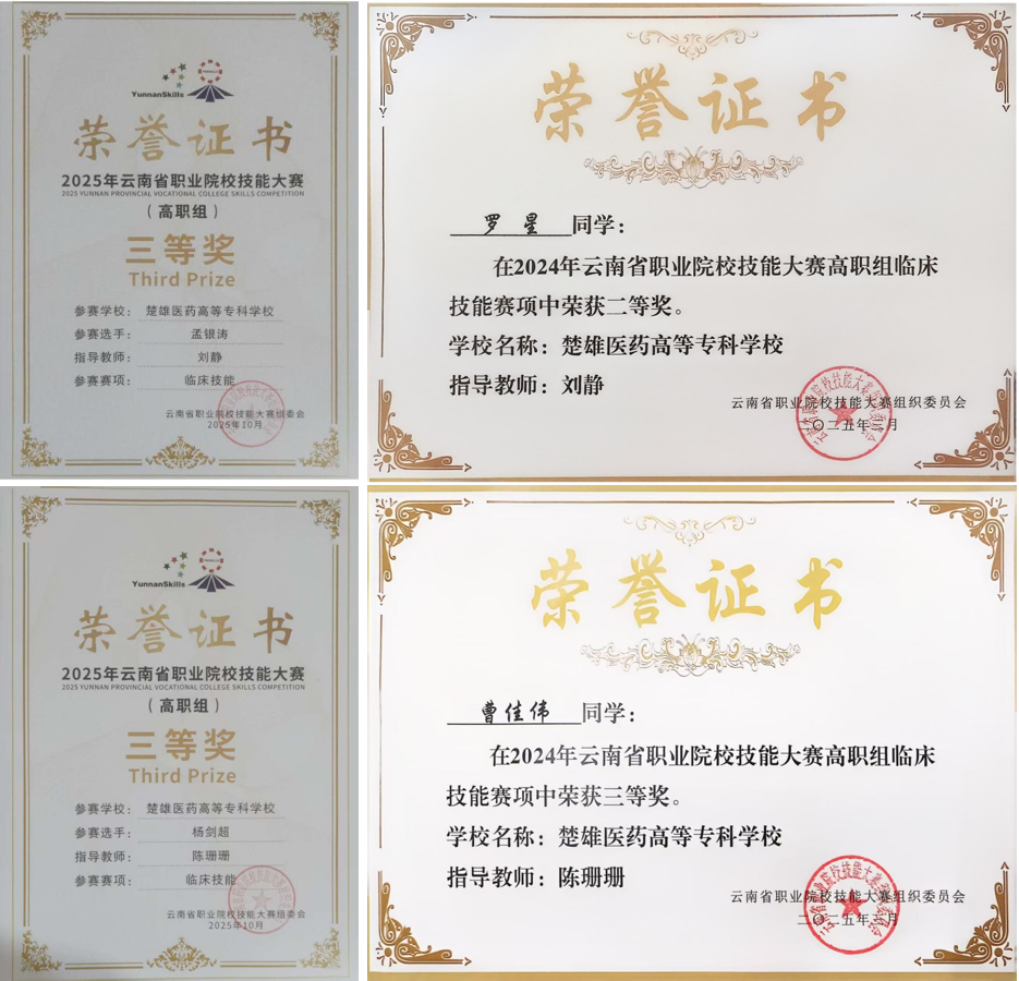 陈珊珊(临床2024)、杨树华(口腔2025)、郭晓敏(妇幼2025)大师工作室均获评楚雄州技能大师工作室