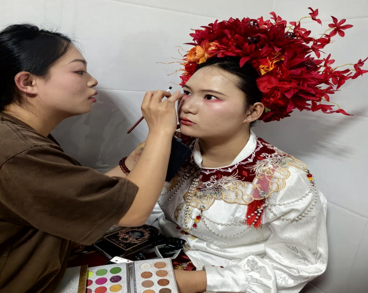 服务团队为表演者化妆