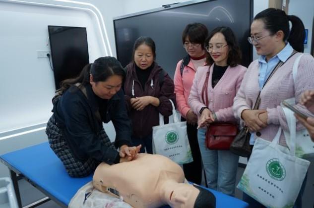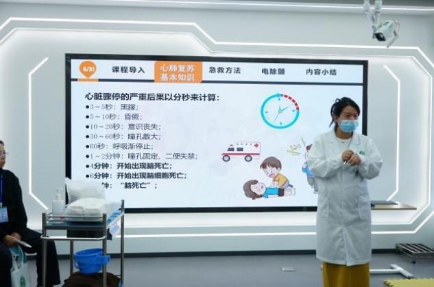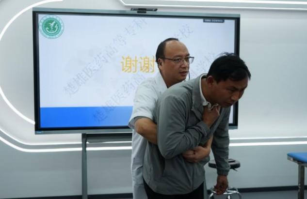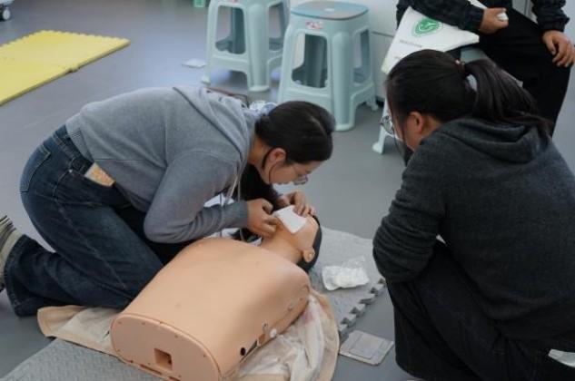 在实战演练环节,全体学员前往学校济世楼技能训练室,在专业教师团队指导下,分别进行了院外徒手心肺复苏、AED使用、气道梗阻急救(海姆立克急救法)、外伤止血包扎固定等急救技能的实操训练,实现了理论与实践的深度融合。