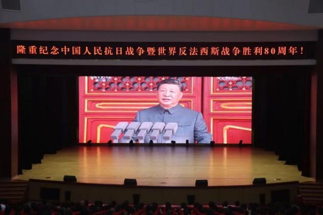 9月3日,学校组织师生在学生会堂集中观看纪念中国人民抗日战争暨世界反法西斯战争胜利80周年大会直播,共同铭记历史、缅怀先烈、珍爱和平、开创未来。