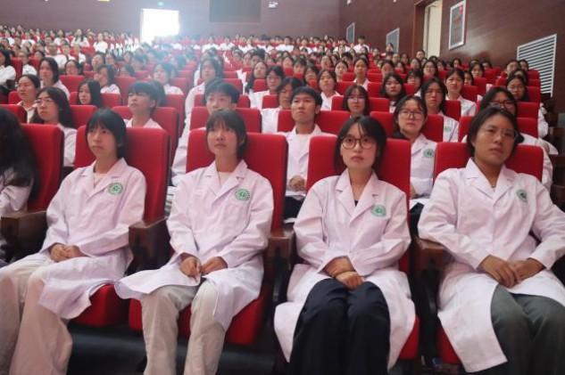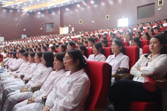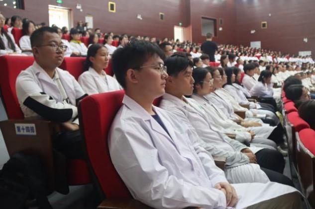 上午9时,学生会堂师生整齐端坐,学校党政领导班子成员、中层副职以上领导干部、全体辅导员,各部门及学院教师代表,临床学院、药学院、中医学院、护理学院、医学技术学院、健康管理学院大一学生代表共800余人全程观看阅兵仪式,一同见证中国捍卫世界和平的实力和底气,弘扬伟大抗战精神,激发爱国热情,凝聚起强国有我奋进力量。