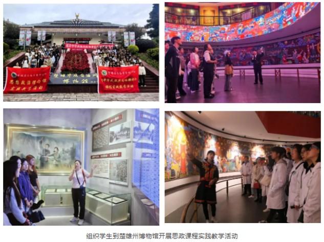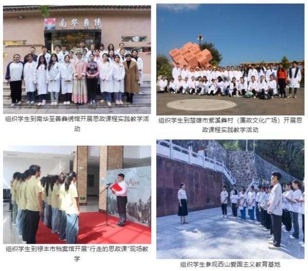 学院精心打造实践育人品牌,将思政小课堂同社会大课堂紧密结合。精心设计“行走的思政课”,先后组织学生到南华县七彩彝绣美丽工坊、中国彝族十月太阳历文化园、楚雄州博物馆、禄丰市档案馆等地开展现场教学15次,覆盖学生2800余人次,让学生在行走中感悟思想伟力、在体验中增强“五个认同”。创新开展“笔尖上的思政课”主题活动,征集展陈作品89件,6名教师指导学生荣获校级一等奖6项。持续擦亮“张桂梅思政大讲堂楚雄医专分课堂”品牌,配合校党委宣传部举办张桂梅思政大讲堂楚雄医专分课堂6讲。围绕纪念中国人民抗日战争暨世界反法西斯战争胜利80周年,组织编撰校史讲稿、课件,受众达3000余人次,讲好楚医故事、传承红色基因。