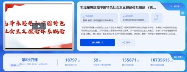 学院锚定课程建设核心地位,统筹推进思政课程体系建设,加快数字化教学资源建设,多门课程获评校级在线精品课程。《毛泽东思想和中国特色社会主义理论体系概论》被云南省教育厅遴选为职业教育国家在线精品推荐课程,选课覆盖全国59所高校,选课人数达18797人次,浏览量突破18735615人次,累计互动次数155871次;《中华民族共同体概论》被本科院校河北省承德医学院整体引进使用,选课覆盖全国42所高校,选课人数达0.9万余人次,浏览量突破591万余次,数智赋能思政课“走出去”实现从无到有的历史性突破。创新开发教学载体,大幅提升虚拟仿真实训室使用率,每年受众达2800余人次,为学生提供沉浸式、交互式VR学习体验,为思政课教学注入新活力。