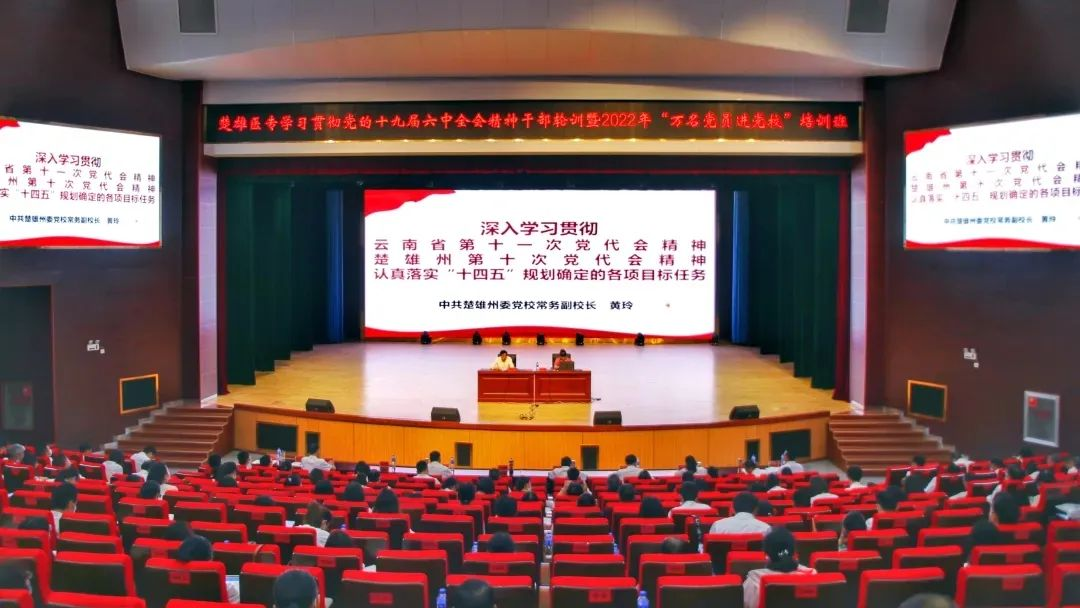 为深入学习习近平新时代中国特色社会主义思想和党的十九届六中全会、云南省第十一次党代会、楚雄州第十次党代会精神,推进党员教育常态化、制度化,不断提升学校党员干部的政治素质和业务能力,学校举办“学习贯彻党的十九届六中全会精神干部轮训暨2022年‘万名党员进党校’培训班”,并于6月25日上午举行开班仪式。学校中层副职以上领导干部和全体党员共计290人参加培训。